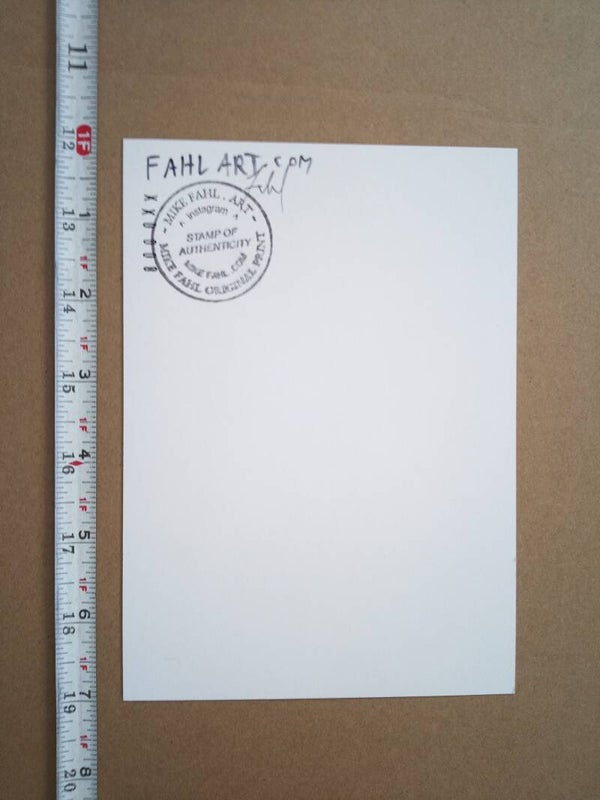 Beating Death at His Own Game 5x7" Art print is mailed out like a postcard. Made from the original painting created by Mike Fahl, original painting is still available for purchase. it is quite large, see ebay or Originals link for details.